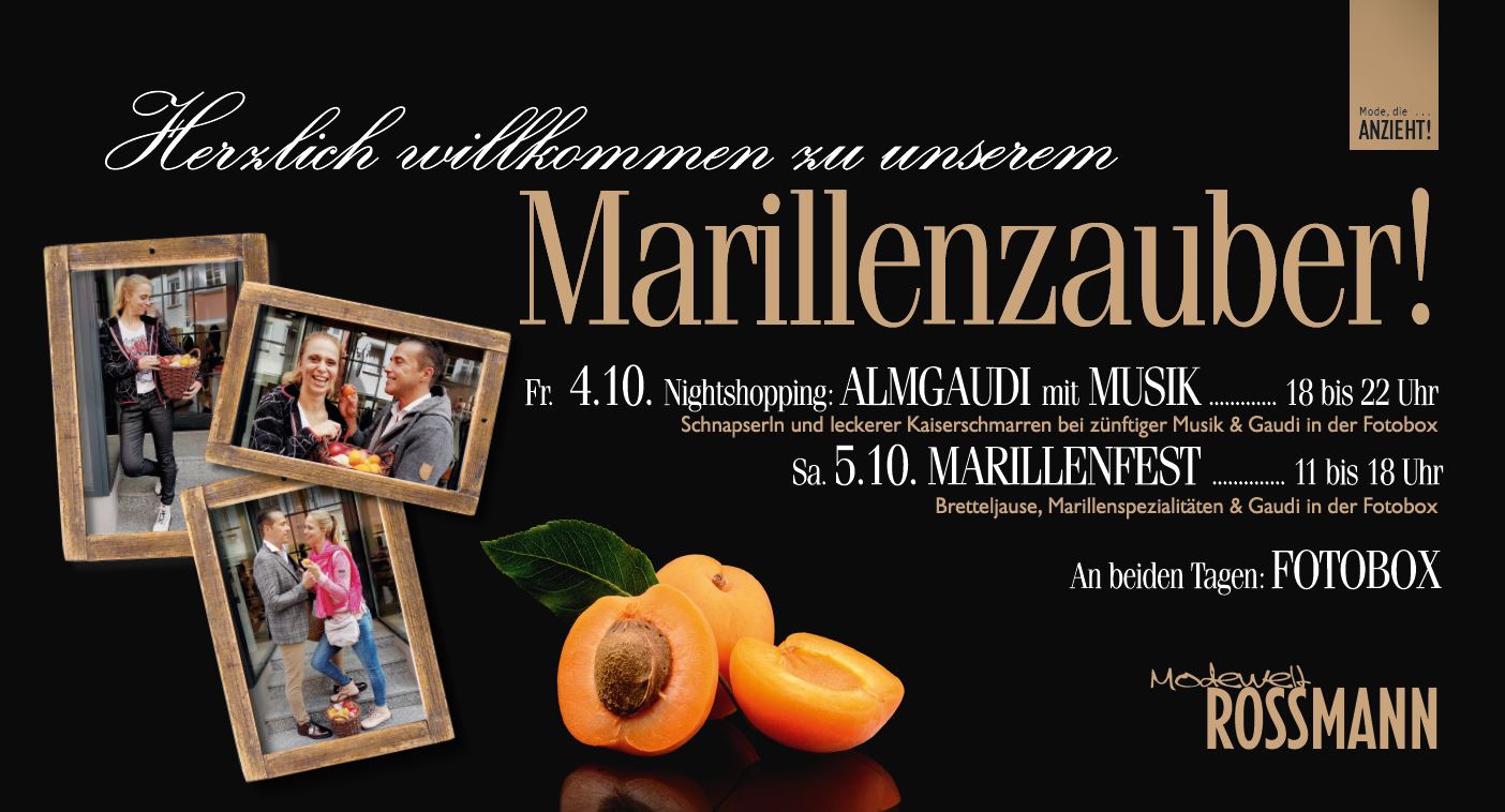 Bei der Modewelt Rossmann in Öhringen heißt es am 04. und 05.10.2019 Nightshopping und Marillenfest. Mit Musik und leckerem Essen darf vor unserer Fotobox posiert werden.
